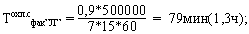 Поскольку от водоёма (500 м3) будет подано на тушение также 10 стволов ГПС-600 фактическое время работы лафетных стволов составит: