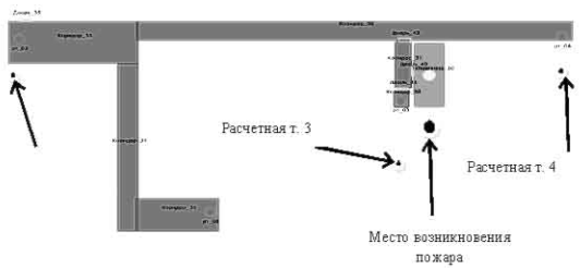 Сценарий 1. Расчет проводился при условии блокирования основных лестничных клеток 1 типа.