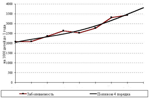 Рисунок 1. Динамика показателей заболеваемости детей в возрасте до 1 года в г. Новый Уренгой.