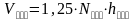 Данная зависимость предполагает, что для извлечения одного пострадавшего требуется устроить в завале шахту (колодец) на всю высоту завала и размером в плане 1 х 1 м. Коэффициент 1,25 учитывает увеличение объема разбираемого завала за счет невозможности оборудования шахты указанных размеров (осыпание завала, извлечение крупных обломков, наклона шахты и т.п.
