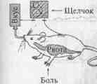 К категории инструментальных УР относится формирование навыка нажатия на рычаг (или клевания кнопки, как на рис. 3.6) для получения порции пищи. После работ Б.Скиннера этот УР стал основным в исследованиях бихевиористов (анализ связей «стимул-реакция»). К инструментальным УР относится также обучение подопытного животного находить путь к пище или избегать неприятных стимулов в лабиринте. Инструментальным УР является и реакция избегания — навык переходить в тот отсек экспериментальной камеры, где отсутствует болевое подкрепление (рис. 7).