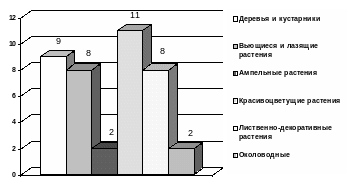 Наибольшей же популярностью пользуются красивоцветущие растения, чуть менее – деревья и кустарники, адаптированные для выращивания их в домашних условиях (см. рис. 3.2.2.)