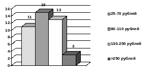 Рис. 4.1. Распределение по ценовым категориям комнатных декоративных растений цветочного рынка города Самары.