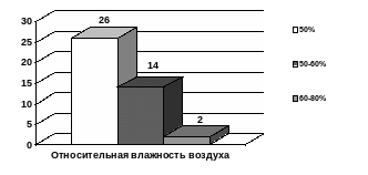 Рис.3.3.1. Распределение декоративных комнатных растений по зависимости от влажности воздуха.