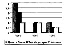 Рис. 8. Снижение общей численности гусей (белолобого и гуменника) на гнездовых территориях (Егоров, 1966; Дегтярев, 1991)