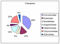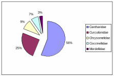 Доминантным семейством является семейство Cantharidae с видами Cantharis sudetica, Rhagonycha limbata и. Для семейства Curculionidae – Phyllobius argeutatus, Otiorhynchus tatarchani, Otiorhynchus bideutatus, Zacladus geranii. Менее распространенными явились семейство Chrysomelidae с видами и родом Gastroidea viridula, Cryptocephalus sp. И семейство Coccinellidae с одним отмеченным здесь видом Coccinula quatuordecimpunctata.
