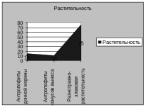 Рис. 22. Соотношение антропофитной растительности и разнотрано-злаковой в пределах границ ледникового экотонадолины реки Птыш.