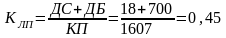 Нормальный уровень коэффициента промежуточного покрытия должен быть не менее 0,7, а в нашем случае он равен 0,45, т.е. значительно ниже рекомендуемого значения.
