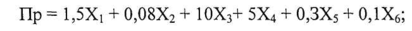 де Хі - cash-flow (грошові потоки) / зобов'язання; Х2 - валюта балансу / зобов'язання; Х3 - прибуток / валюта балансу; Х4 - прибуток / виручка від реалізації; Х5 - виробничі запаси / виручка від реалізації; Х6 - оборотність основного капіталу (виручка від реалізації / валюта балансу).