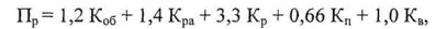 Розрахунки прогнозування ймовірності банкрутства (Пр) за методом Альтмана здійснюється за формулою:
