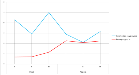 Рис.2 Климатические показатели по г. Тирасполь за 2009 г (март, апрель)