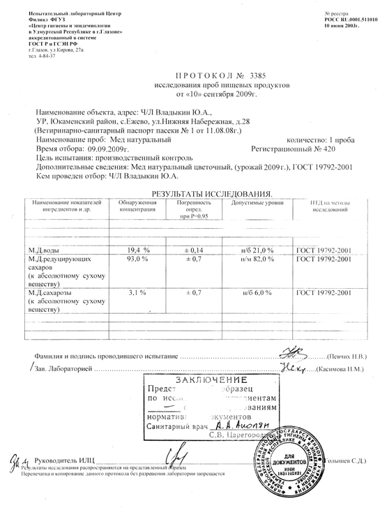 2. Рекомендовать пчеловоду Владикину Ю. А. проводить ежегодную замену маток на однолетних, используя искусственный вывод маток от лучших семей по медовой продуктивности и зимостойкости.