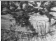 Підвищення твердості металу шва внаслідок пластичного деформування зумовлене частковим подрібненням зерна аустеніту і виникненням більш насичених, чітко виражених площин ковзання 127 (внаслідок зсуву дислокацій) (рис.4.5а). Також, як показали результати досліджень, на поверхні шва утворилась структура мартенситу деформації (рис.4.5, б) 128, що зумовлює зростання твердості.