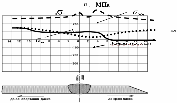 Однак перед цим необхідно мати інформацію про залишковий напружений стан у диску вже після прокатування шва роликами, оскільки одним із основних чинників, які впливають на втомну міцність зварного з'єднання є величина та характер залишкових напружень у зоні термічного впливу.