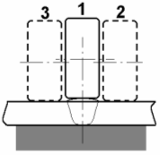 Рис.4.7 Схема прокатування шва і зони пластичних деформацій 1,2,3 - послідовність прокатування
