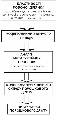 Схематично методику моделювання хімічного складу шва та необхідного для його утворення порошкового дроту зображено на рис.2.1
