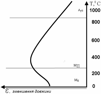 Схематично вигляд дилатометричної кривої для сталі 65Г зображено на рис.2.6