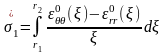 Вирази для обчислення залишкових зварювальних напружень, в залежності від ділянок відремонтованого диска зображаємо наступними співвідношеннями: