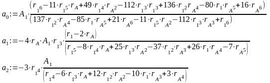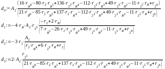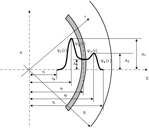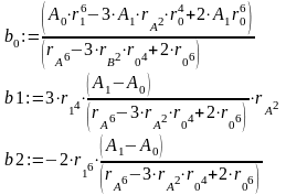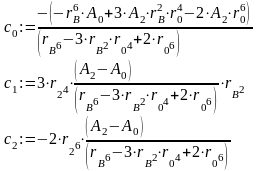 Тут невідомими є параметри поля пластичних деформацій, а саме: r1, r2 - координати початку та кінця зони пластичних деформацій, rА, rВ - координати максимальних значень напружень у певних ділянках величиною А0, А1, А2,