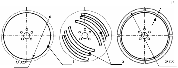 Для ремонту дисків сошника зернової сівалки шляхом відновлення їх робочої поверхні за зовнішнім діаметром, деталі - сектори ремонтного кільця і базова деталь (диск, до якого приварюються сектори) (рис.3.1) - відбирались із гранично спрацьованих дисків за такими критеріями 7,39: відсутність зазублин та тріщин в диску; зминання леза допускається не більше як в п'яти місцях, глибиною та довжиною не більше 1,5. .2мм.; кільцеве зношення диска у місцях контакту з прокладкою допускається глибиною до 0,2. .0,4мм.; зовнішній діаметр спрацьованого диска D≥323. .324мм.