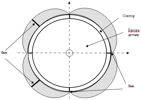 Відновлення зовнішнього діаметра дисків передбачає приварювання до базової деталі чотирьох секторів, виготовлених із неремонтнопридатних дисків, коловим швом із подальшим виконанням прямолінійних для з’єднання секторів між собою (рис.2.10).