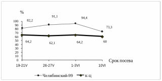 | Срок посева | Челябинский 99 (стандарт) | К-Ц | ± |