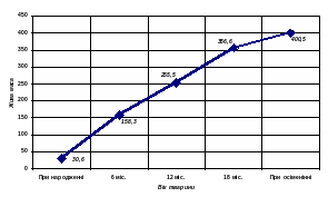 Рис.1. Показники росту тварин в різні вікові періоди.