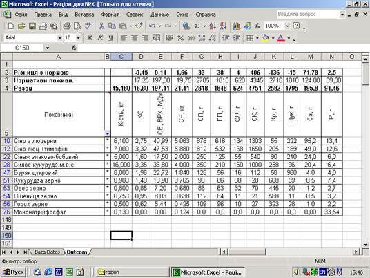 Приблизний раціон годівлі для дійних корів масою 500-550кг. на зимовий період