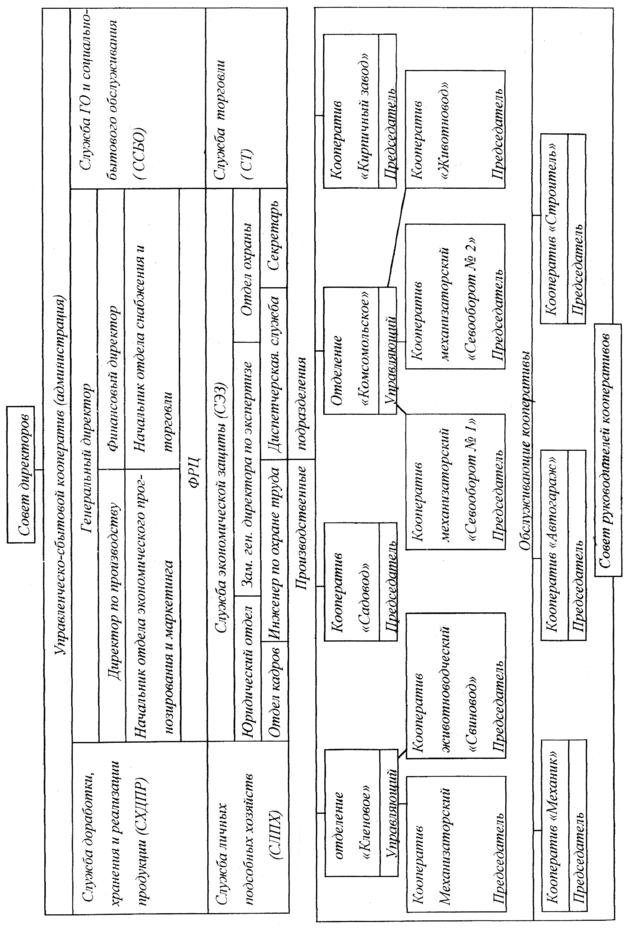 Главной отраслью хозяйства является растениеводство. Хотя в официально имеющейся на предприятии организационно-производственной структуре (см. рис. 1) имеется свиноферма (кооператив «Свиновод»), фактически он уже прекратил свое существование (законсервирован) из-за систематической убыточности.