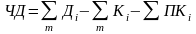 Чистый доход (ЧД); иногда этот показатель называют текущим чистым доходом или накопленным эффектом (сальдо денежного потока по операционной и инвестиционной деятельности за расчетный период или период, в течение которого используется инвестиционный проект). Чистый доход за весь срок использования инвестиционного проекта рассчитывается по формуле 1