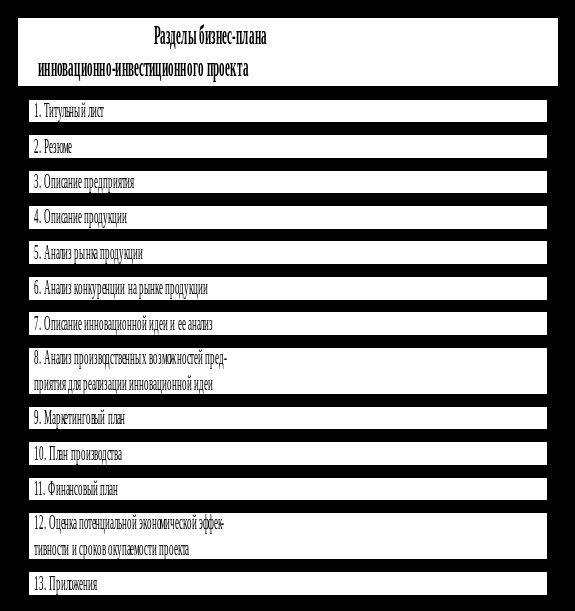 Используя соответствующую экономическую информацию, экономисты-менеджеры, принимающие перспективные инновационно-инвестиционные решения, получают возможности для подготовки бизнес-плана соответствующего инвестиционного проекта. Без бизнес-плана ни один инвестор не предоставит заемных средств для осуществления соответствующего проекта. Да и само предприятие не должно расходовать собственные финансовые ресурсы на инвестиционные цели до составления детально обоснованного бизнес-плана. Ведь бизнес-план - это документ, отражающий все аспекты будущего коммерческого проекта, в котором должны быть проанализированы все возможные проблемы и описаны способы их решения [18, 21, 29].