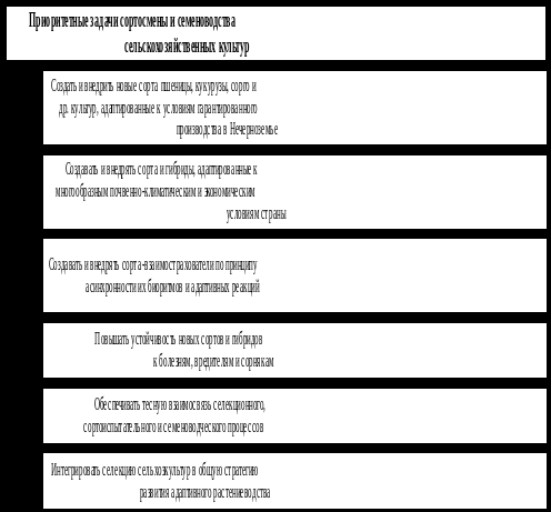 Обобщая направления инновационной деятельности в сортосмене и семеноводстве сельскохозяйственных культур, приоритетные задачи этой сферы можно представить в виде схемы, помещенной на рис.2.