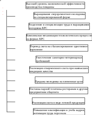 На рисунке 7 схематически показаны комплексы организационно-технологических и организационно-экономических мероприятий, направленных на повышение экономической эффективности выращивания и откорма молодняка КРС, т.е. на производство говядины и выращивание племенного скота.