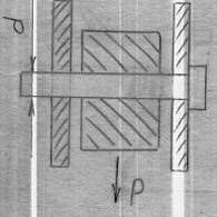 При закреплении рыхлительной лапы-стабилизатора к секции культиватора используется палец диаметром 15мм. Его необходимо рассчитать на срез. Для расчётов используем представленную на рисунке 4.5 схему.