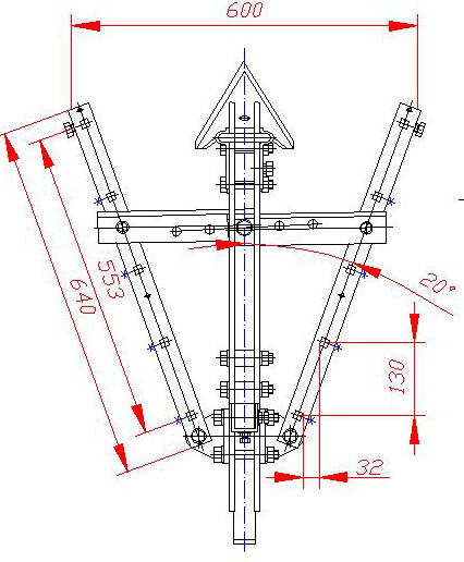 С учетом расстояния между зубьями в продольном направлении, расстояния между бороздами, а также между креплениями планки, места для установки ботвоотвода, примем длину боковых планок равной 640 мм.