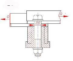 Рисунок 4.4 – Расчётная схема крепления и силы, действующие на болт при срезе