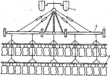 Рисунок 3.1 - Схема широкозахватного агрегата с тяжелыми зубовыми боронами ЗБЗТС-1,0, прикрепленными к сцепке в два поперечных ряда.
