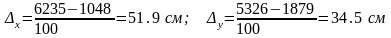 Максимальна протяжність фігури землекористування за осями координат з врахуванням масштабу плану визначається так: