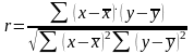 где r – коэффициент корреляции; x, y – значение изучаемых признаков;
