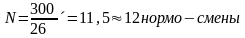 Зная объём и норму выработки, определим количество нормо – смен по формуле: