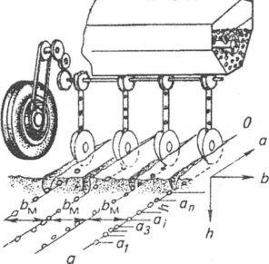 В общем комплексе технологических операций при возделывании сельскохозяйственных культур посеву принадлежит определяющая роль. При посеве семена сеялками размещаются в продольном а, поперечном b и вертикальном h направлениях. При этом стремятся создать необходимые и достаточные условия для формирования оптимальной густоты растений и получения запрограммированного урожая.