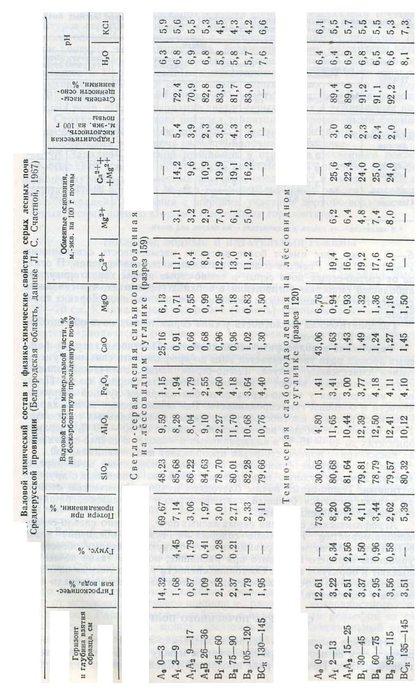 Таблица 1. Валовой химический состав и физико-химические свойства серых лесных почв Среднерусской равнины (Белгородская область, данные Л.С. Счастной, 1967)