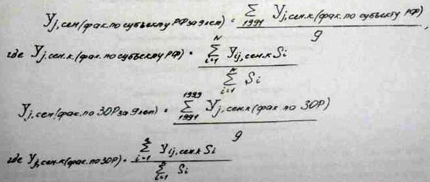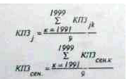 Определяются среднегодовые коэффициенты затрат в земельно-оценочных районах по сельскохозяйственным культурам и сенокосам путем суммирования ежегодных коэффициентов за 1991-1999 гг. и делением полученной суммы на количество лет, т.е. на 9.