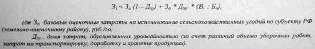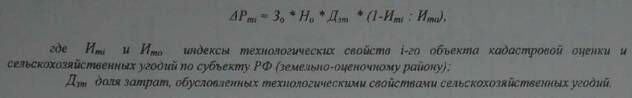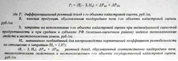 ентный доход, обусловленный технологическими свойствами объекта кадастровой оценки (АРmi) определяется путем дифференциации части базовых затрат на использование 1 га сельскохозяйственных угодий в субъекте РФ (земельно-оценочном районе) (Зо) пропорционально индексу технологических свойств z-го объекта кадастровой оценки: