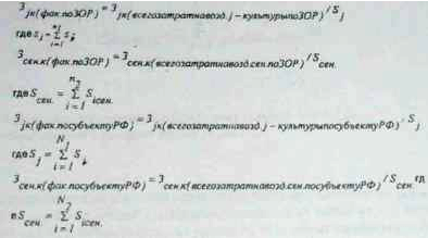 Определяются ежегодные коэффициенты затрат в земельно-оценочных районах по сельскохозяйственным культурам и сенокосам делением фактических затрат за соответствующий год по земельно-оценочным районам на фактические затраты в целом по субъекту РФ.