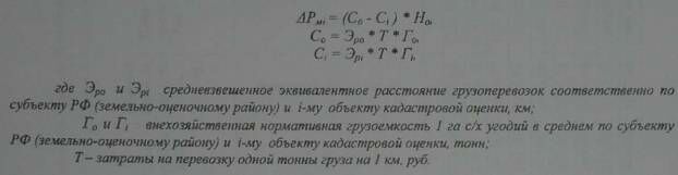 Рентный доход, обусловленный местоположением объекта кадастровой оценки (АРmi) определяется как разность между стоимостью грузоперевозок при средних по субъекту РФ (земельно-оценочному району) значениях грузоемкости и удаленности земель (Со, руб./га) и их стоимостью на оцениваемых объектах (Ci, руб./га):