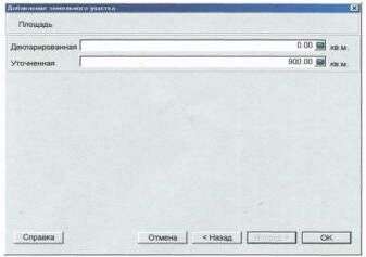 Эта страница служит для ввода информации о площади земельного участка. На этой странице обязательно заполнение одного из двух полей.