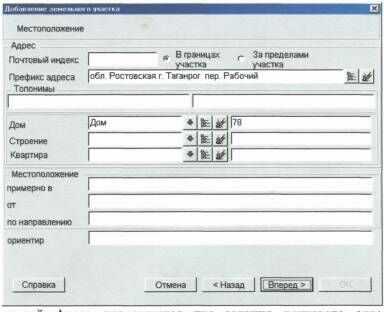 Эта страница используется для внесения информации о местоположении земельного участка.