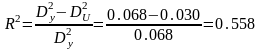 . Цей показник показує, що вариація залежної змінної залежить від варіації пояснюючих змінних на 55,8% -