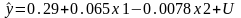 Опишемо зв'язок між урожайністю льоноволокну (факторна змінна Х1), витратами праці на 1 центнер льонотрести (факторна змінна Х2) та якістю льнотрести (результуюча змінна У). Для побудови моделі лінійної регресії скористаємось матричною формулою